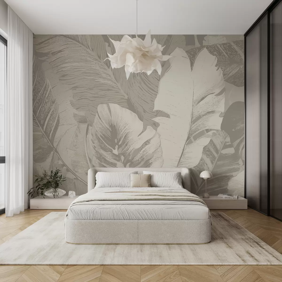 Fotobehang Grote palmbladeren in pastelkleuren N° w01761