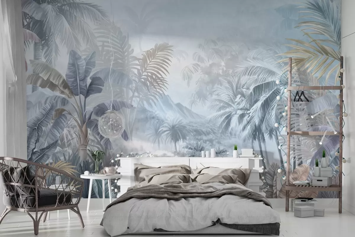 Fotobehang Tropisch bos in zachte blauwe tinten N° w01931
