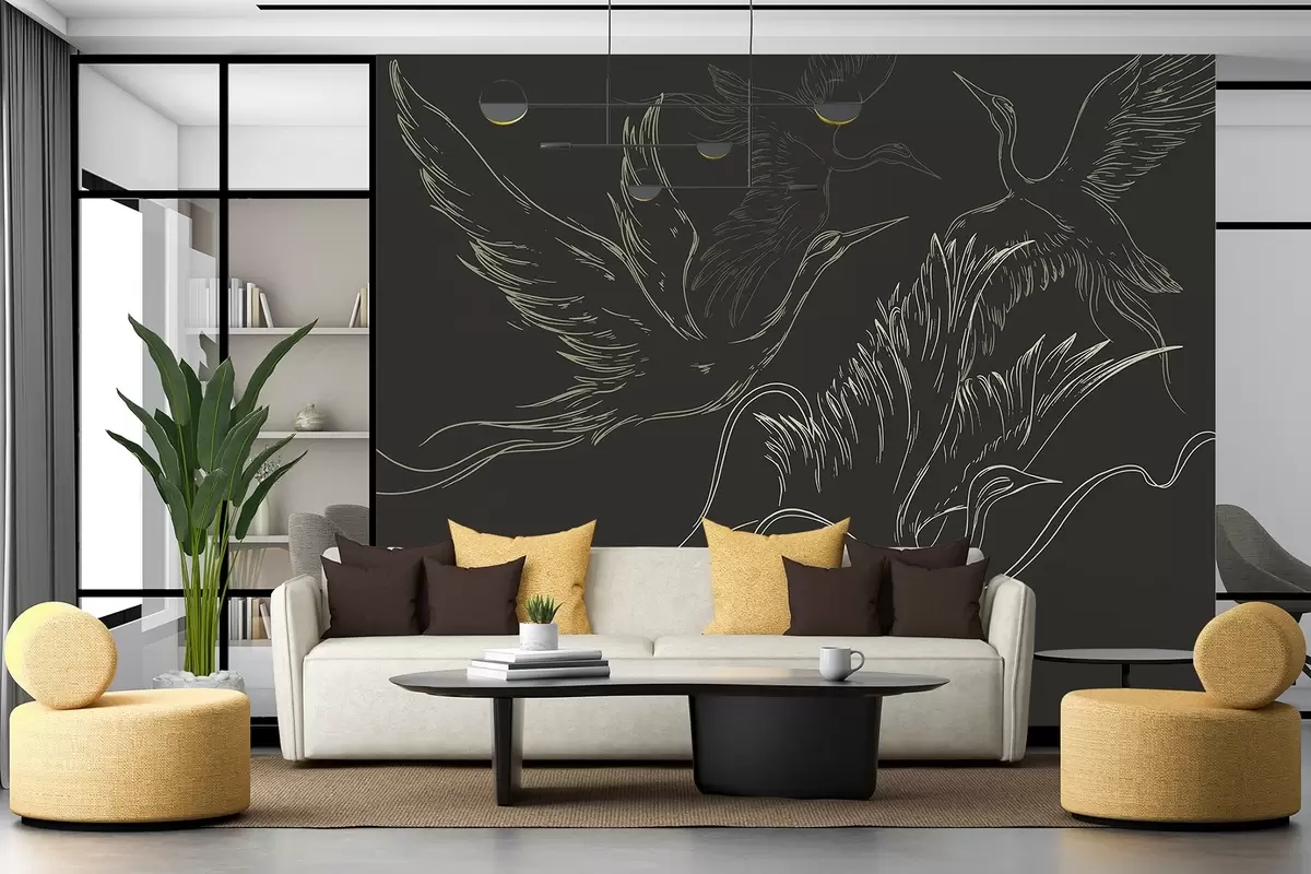 Fotobehang Vliegende vogels, minimalisme, lijntekening, natuur, donkere achtergrond N° w02061v3