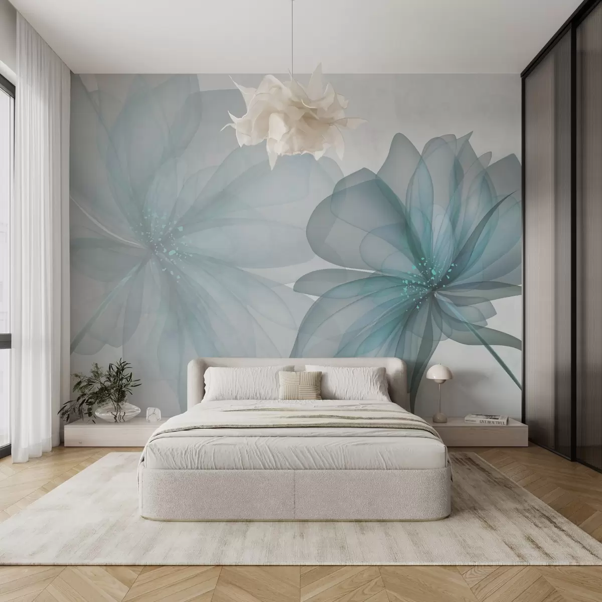 Fotobehang doorschijnende grote blauwe bloemen N° w02205v1