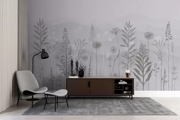 Fotobehang behang in eco-stijl, wilde bloemen in grijstinten N° w02443