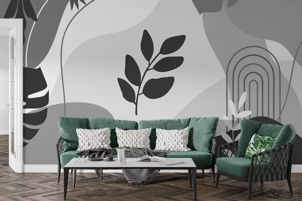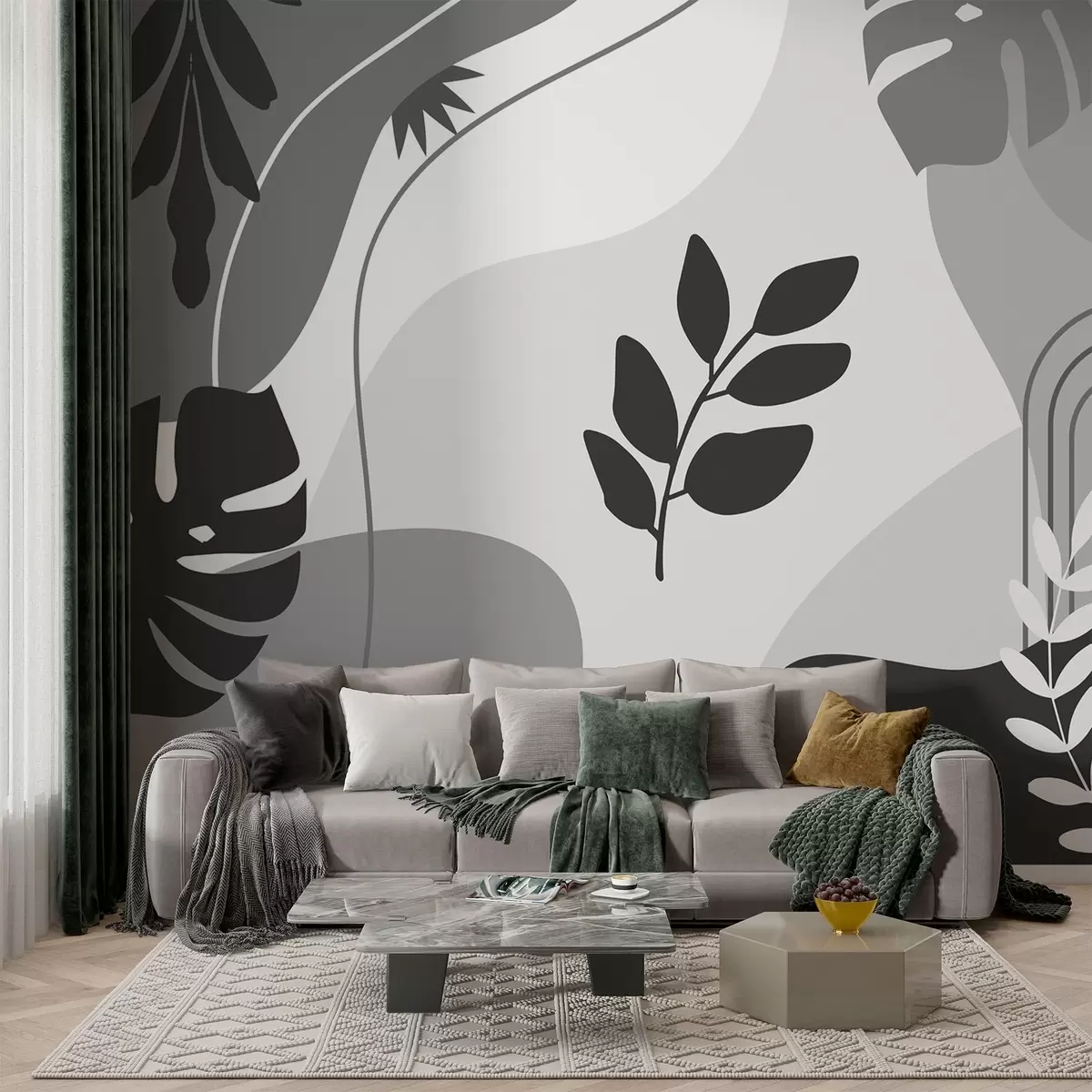 Fotobehang Abstract patroon met silhouetten van bladeren N° w02462v2