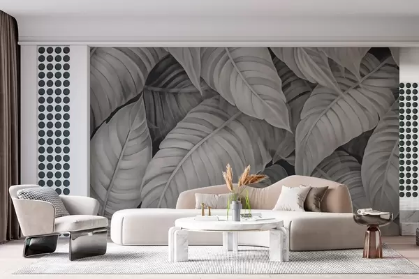 Fotobehang Monochroom beeld van tropische bladeren N° w02463