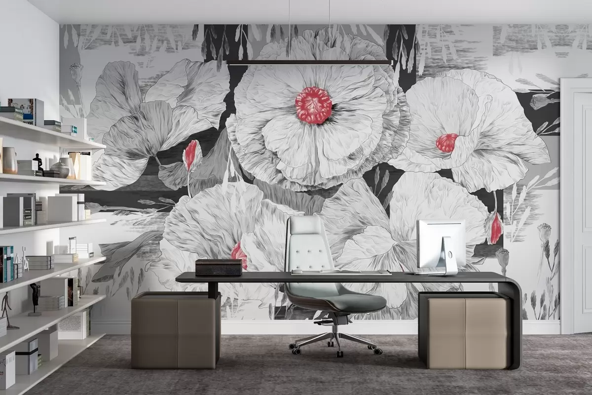Fotobehang Monochrome bloemen in zachte elegantie N° w02477