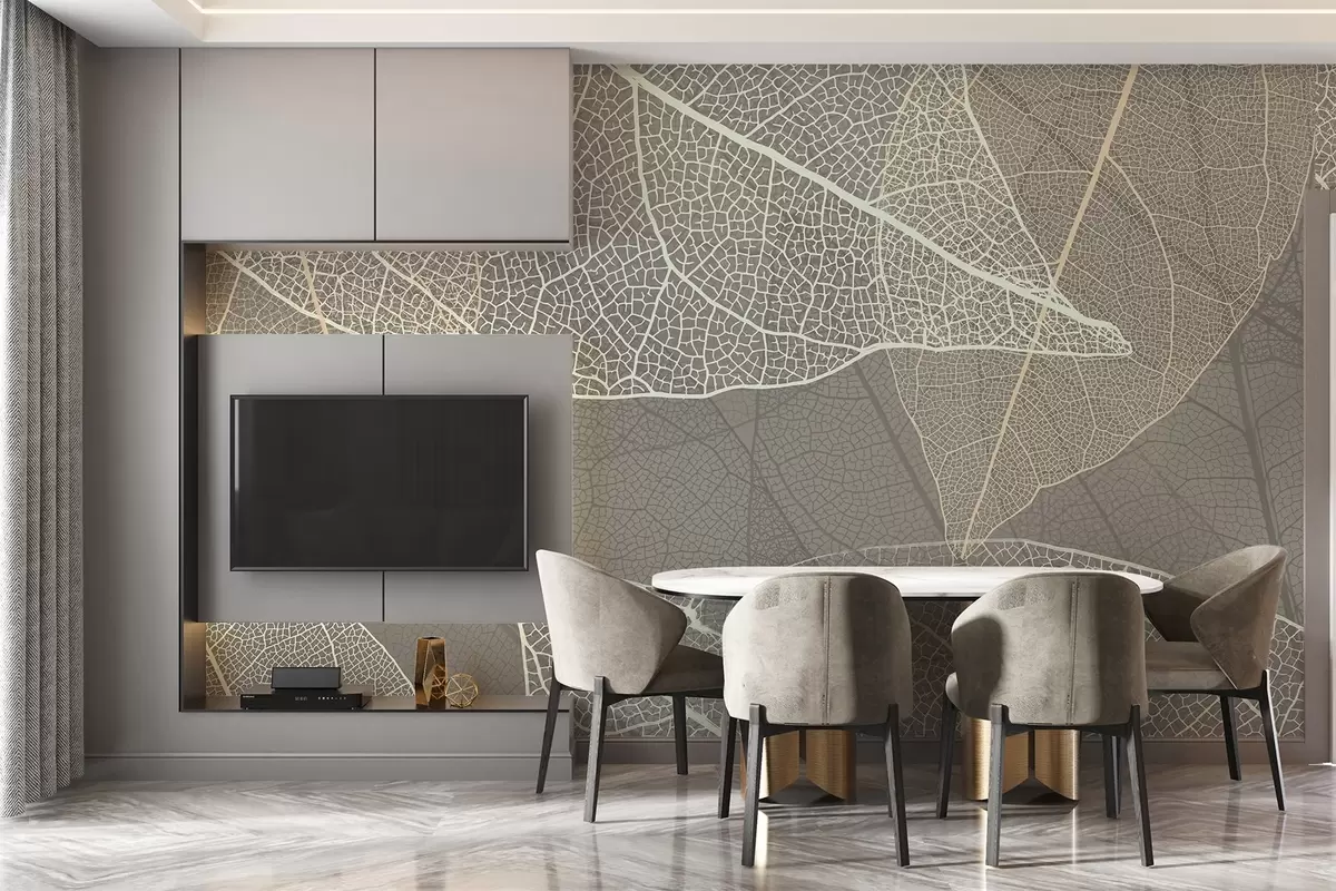 Fotobehang close-up van bladeren met nerven in warme grijstinten N° w02520v2