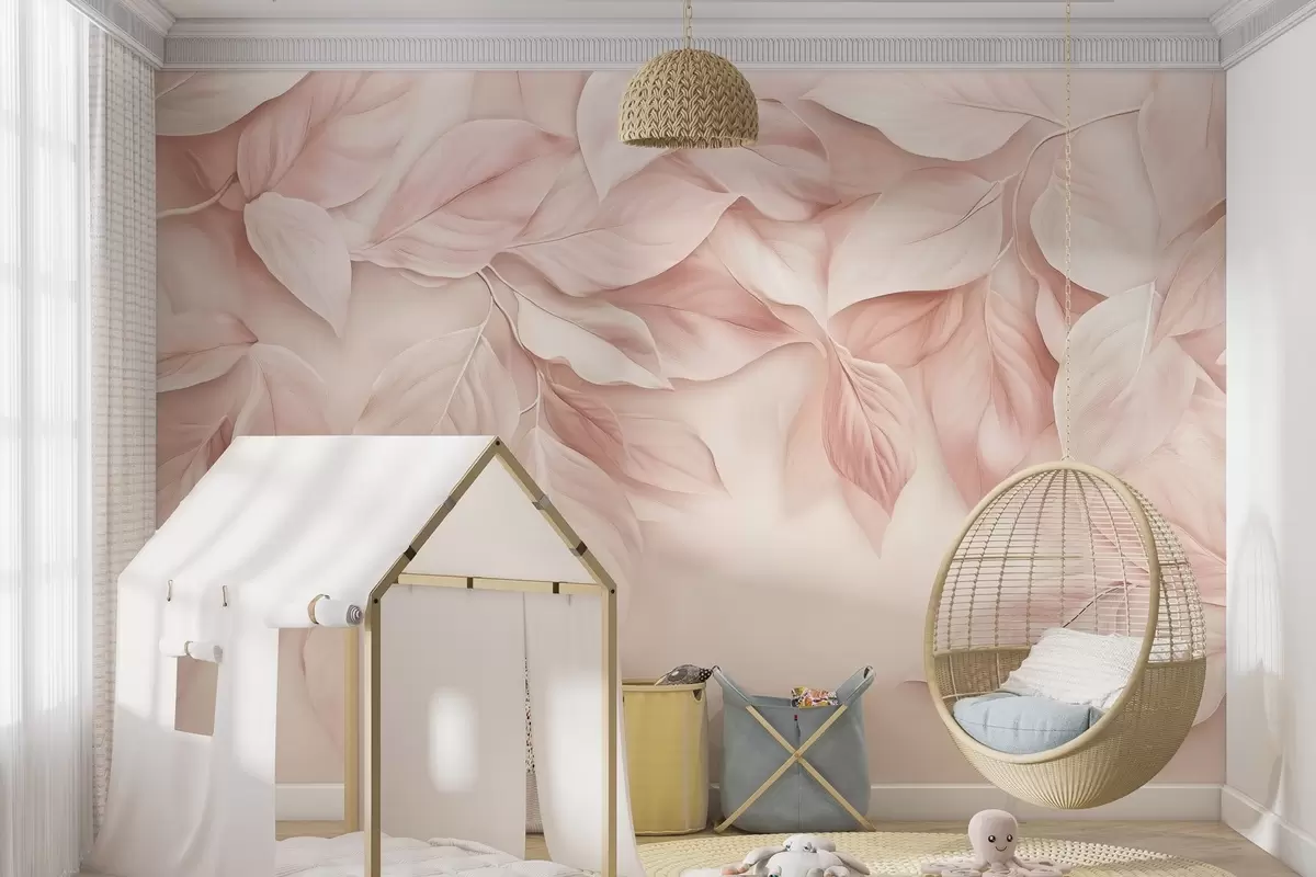 Fotobehang delicate roze bladeren voor de meisjesslaapkamer N° w02549