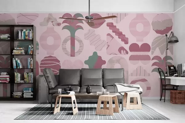 Fotobehang verschillende interessante vormen, moderne geometrie in roze kleuren N° w02550