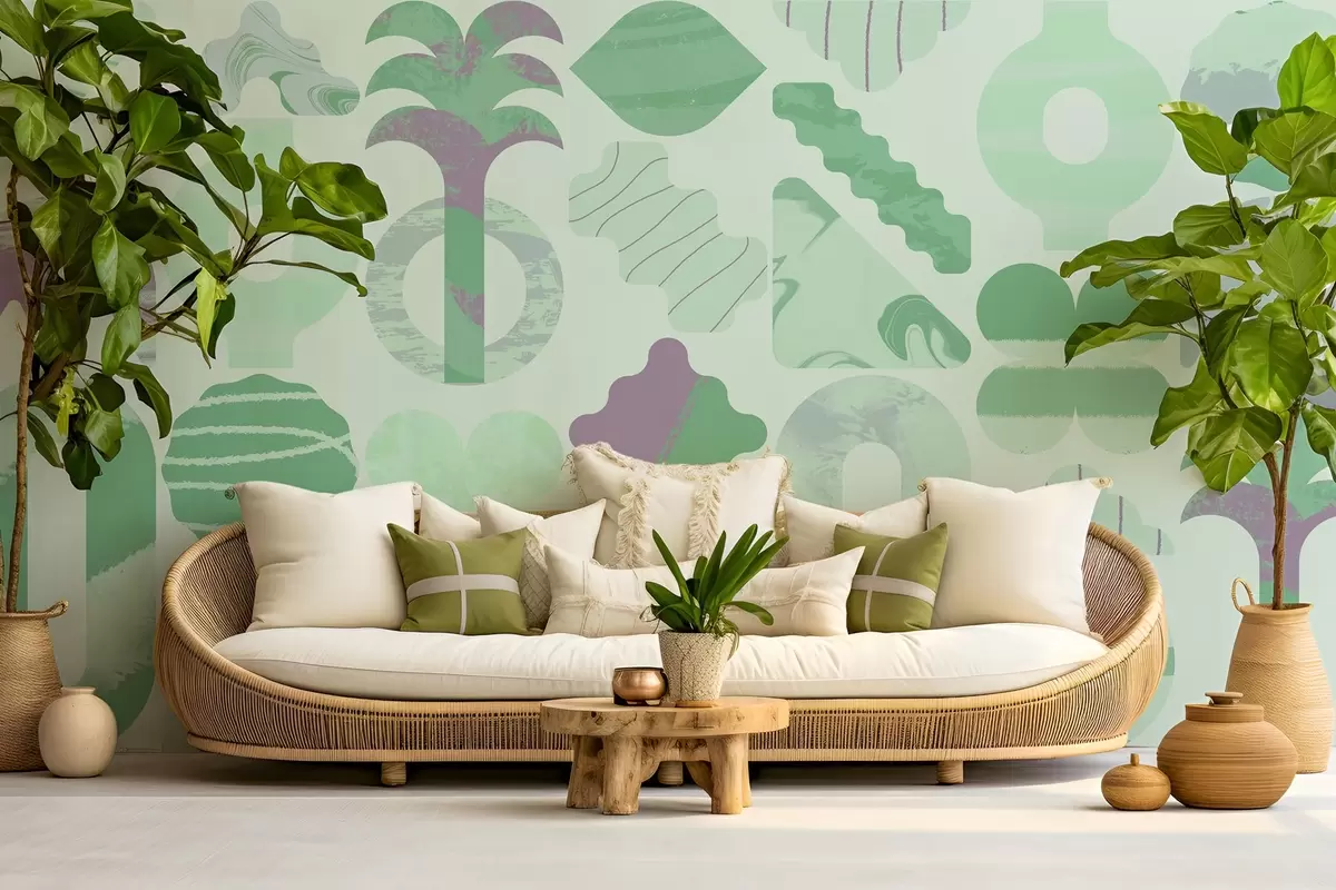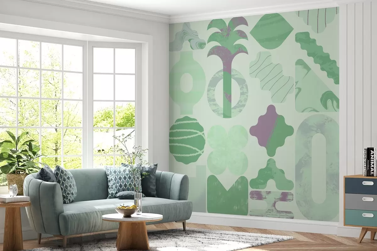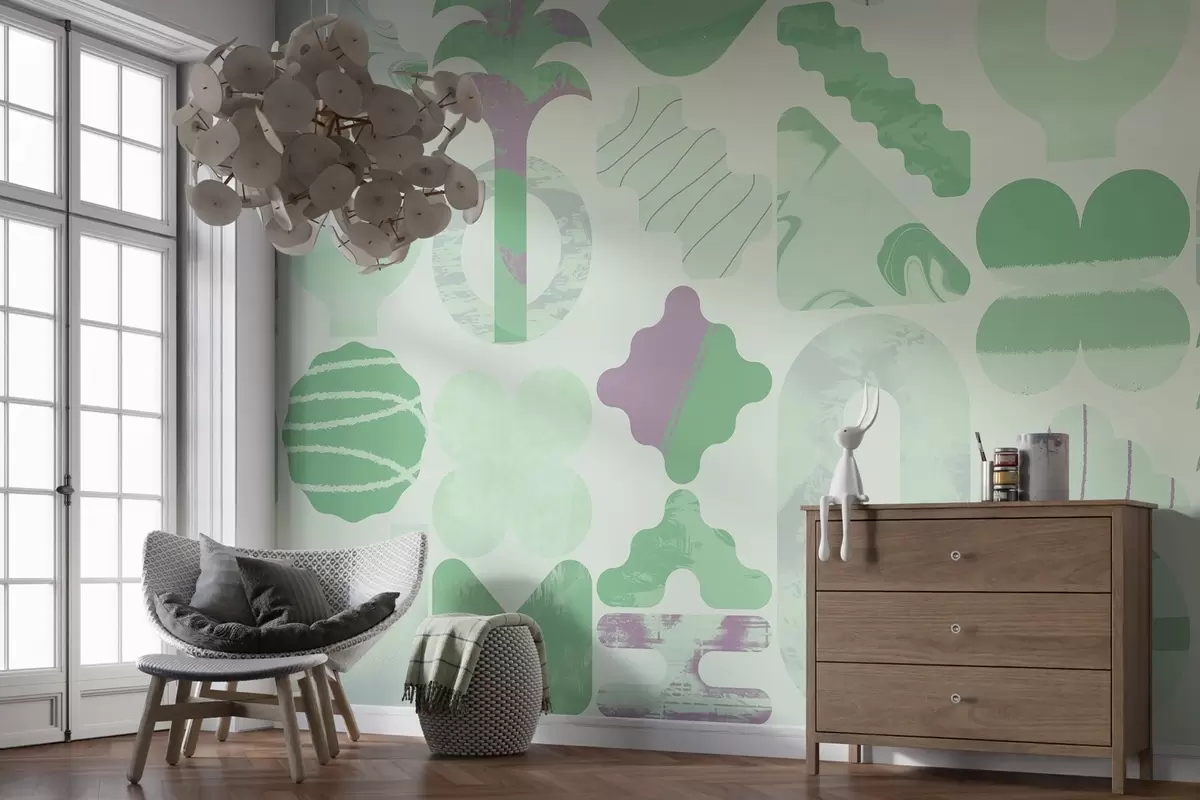 Fotobehang verschillende interessante vormen, moderne geometrie in groene kleuren N° w02550v2