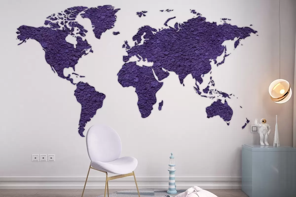 Fotobehang Wereldkaart met mos, natuur, paars kleurenpalet N° w02657v3