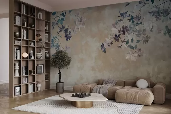 Fotobehang behang in retrostijl met takken en bloemen N° w02686
