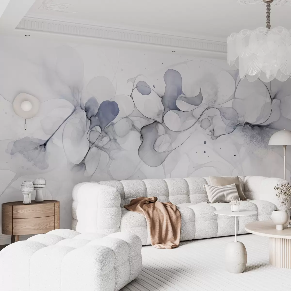 Fotobehang Vloeiende kunststijl, abstractie, zachte grijze kleuren N° w02745v3