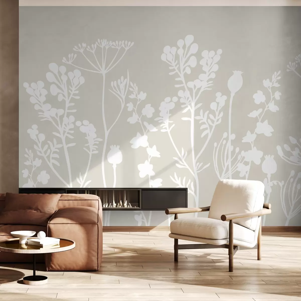 Fotobehang witte silhouetten van bloemen op een beige achtergrond N° w02809v2