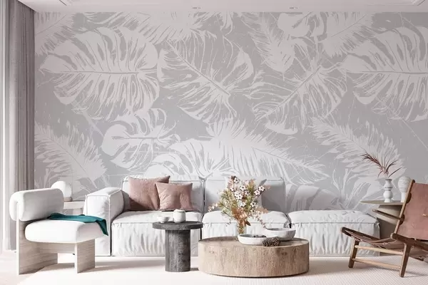 Fotobehang Witte bladsilhouetten op een gestructureerde achtergrond N° w02895