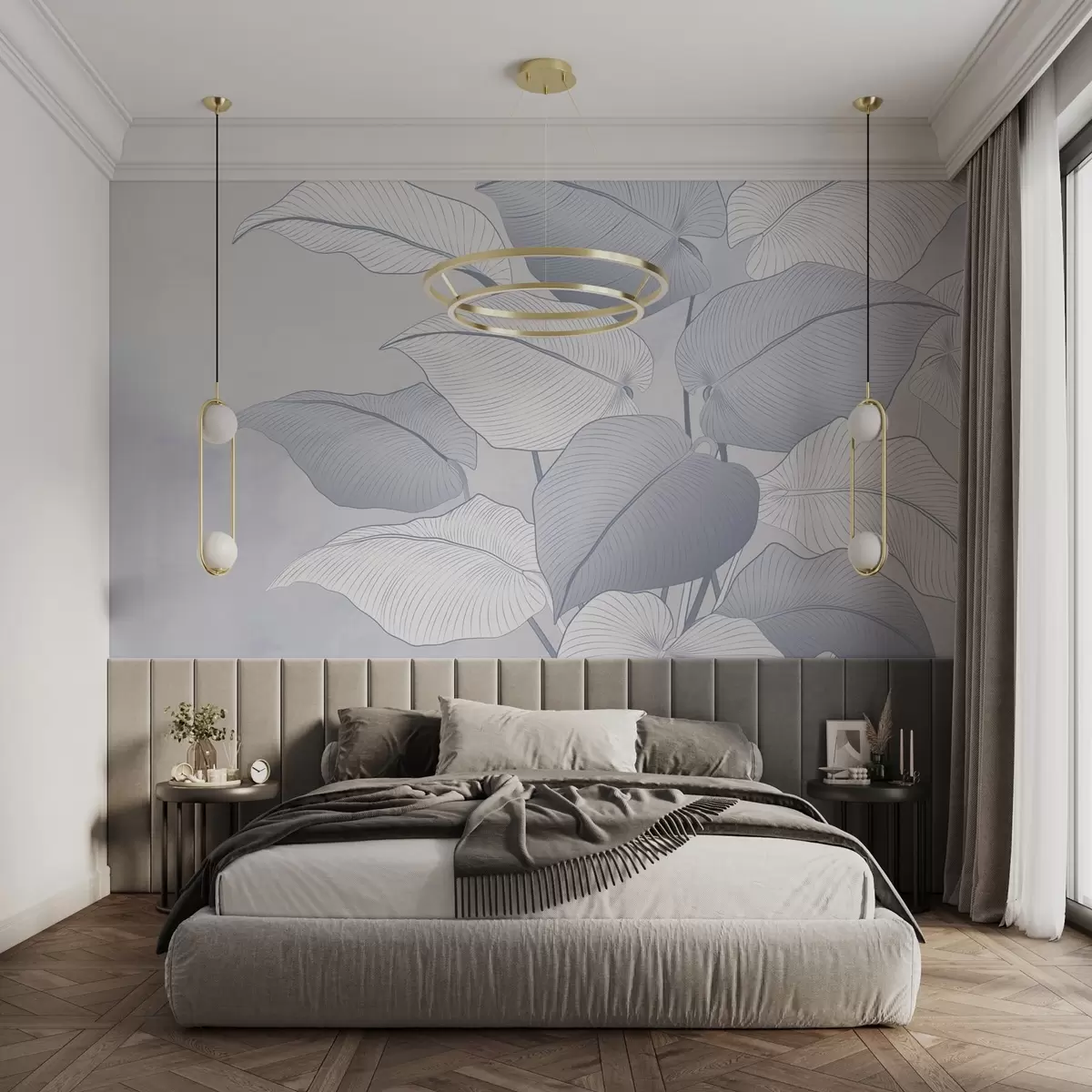 Fotobehang Grote bladeren in blauwe tinten N° w02968v1