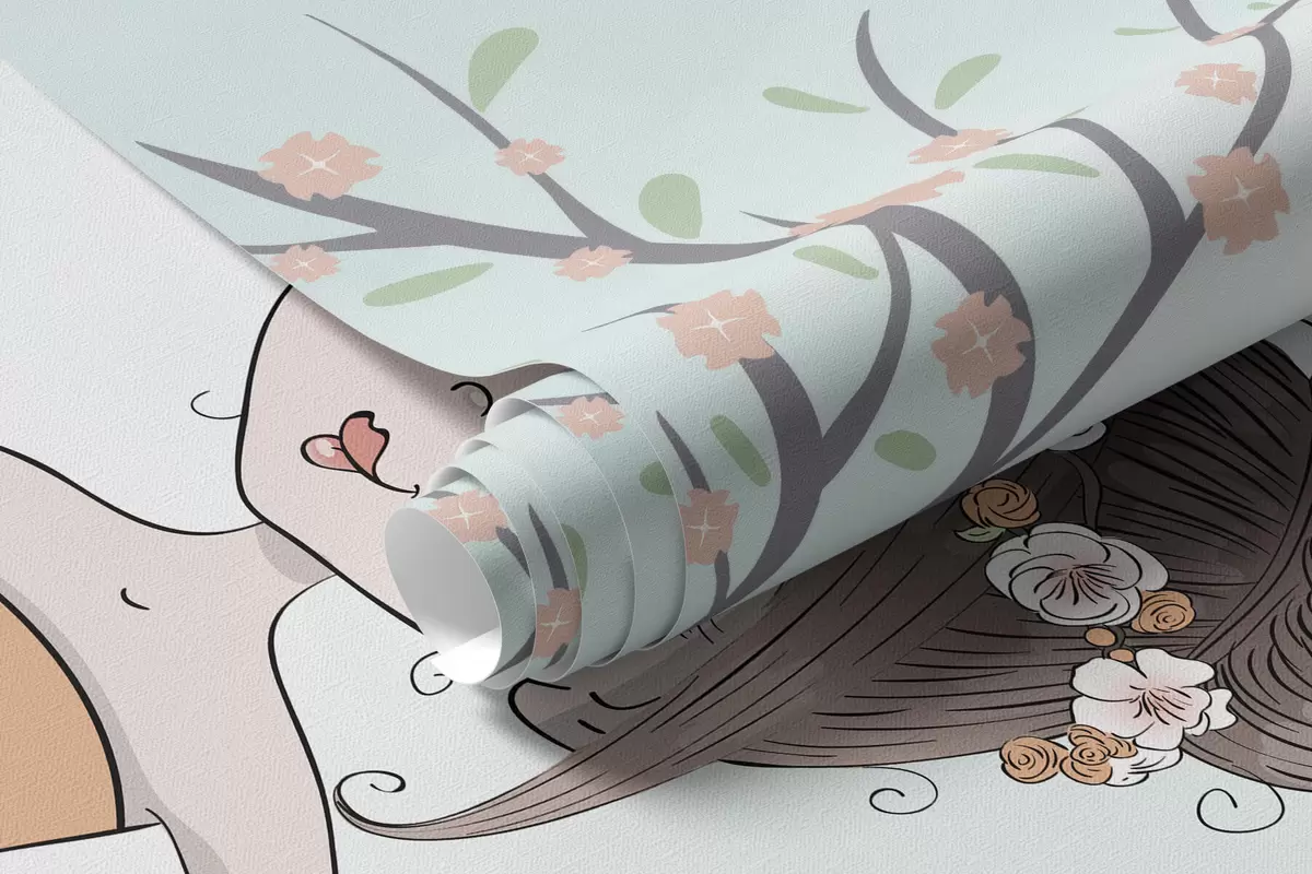 Fotobehang Een landschap met prinses met vogels en vlinders N° w03003v1