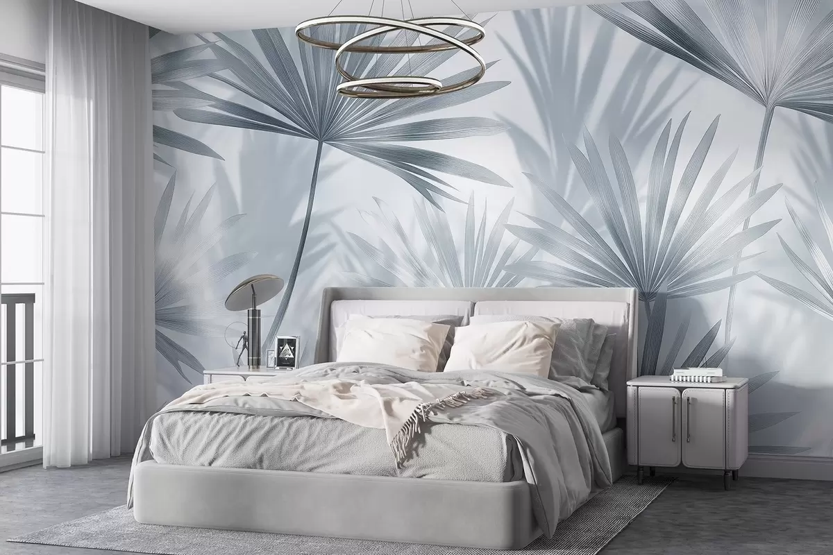 Fotobehang Palmbladeren, bloemenpatroon, minimalisme, tropisch, grijze kleuren N° w03152v1