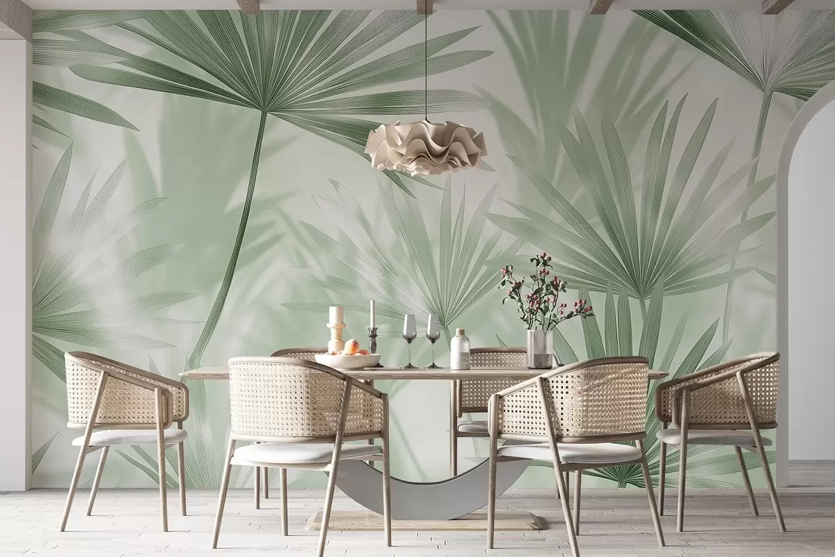 Fotobehang Palmbladeren, bloemenpatroon, minimalisme, tropisch, groene kleuren N° w03152v2