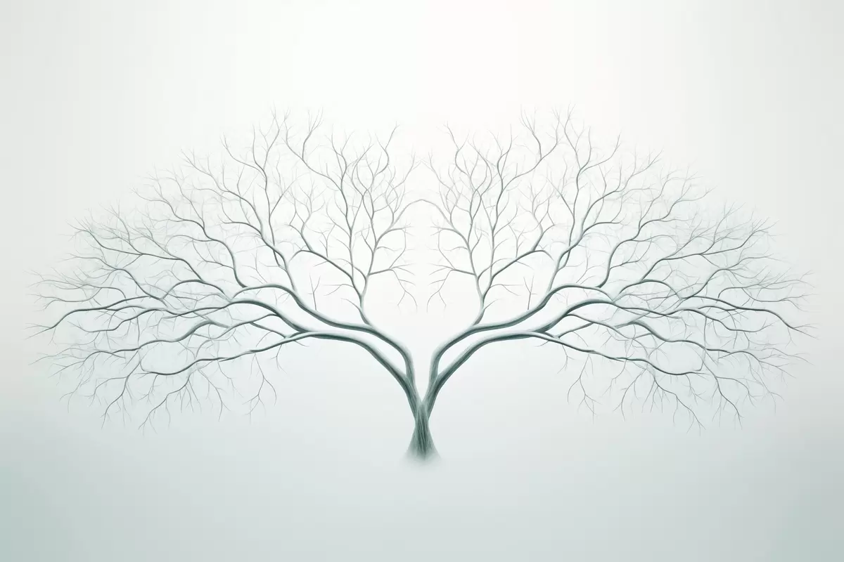 Fotobehang Minimalistische afbeelding van een boom met tere takken op een lichtblauwe achtergrond N° w03159v1