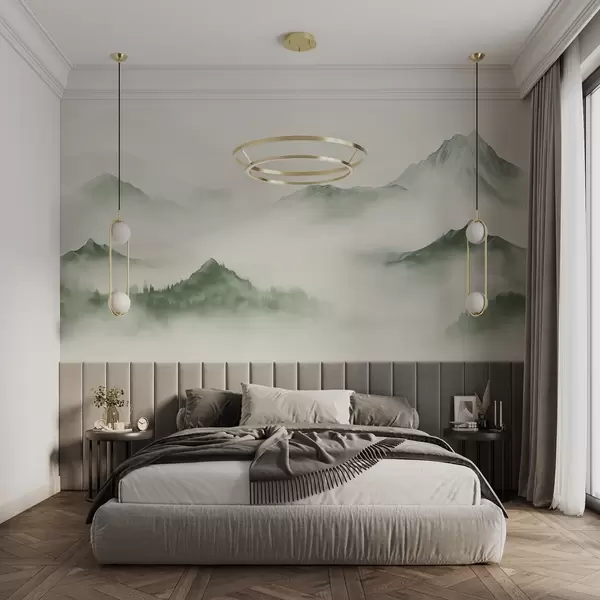 Fotobehang Minimalistisch berglandschap in de mist N° w03161v3
