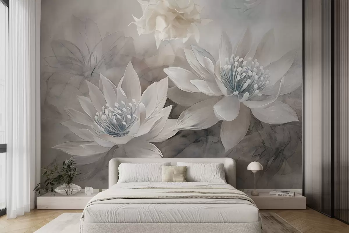 Fotobehang Paar aquarel bloemen op grunge muur N° w03188v1