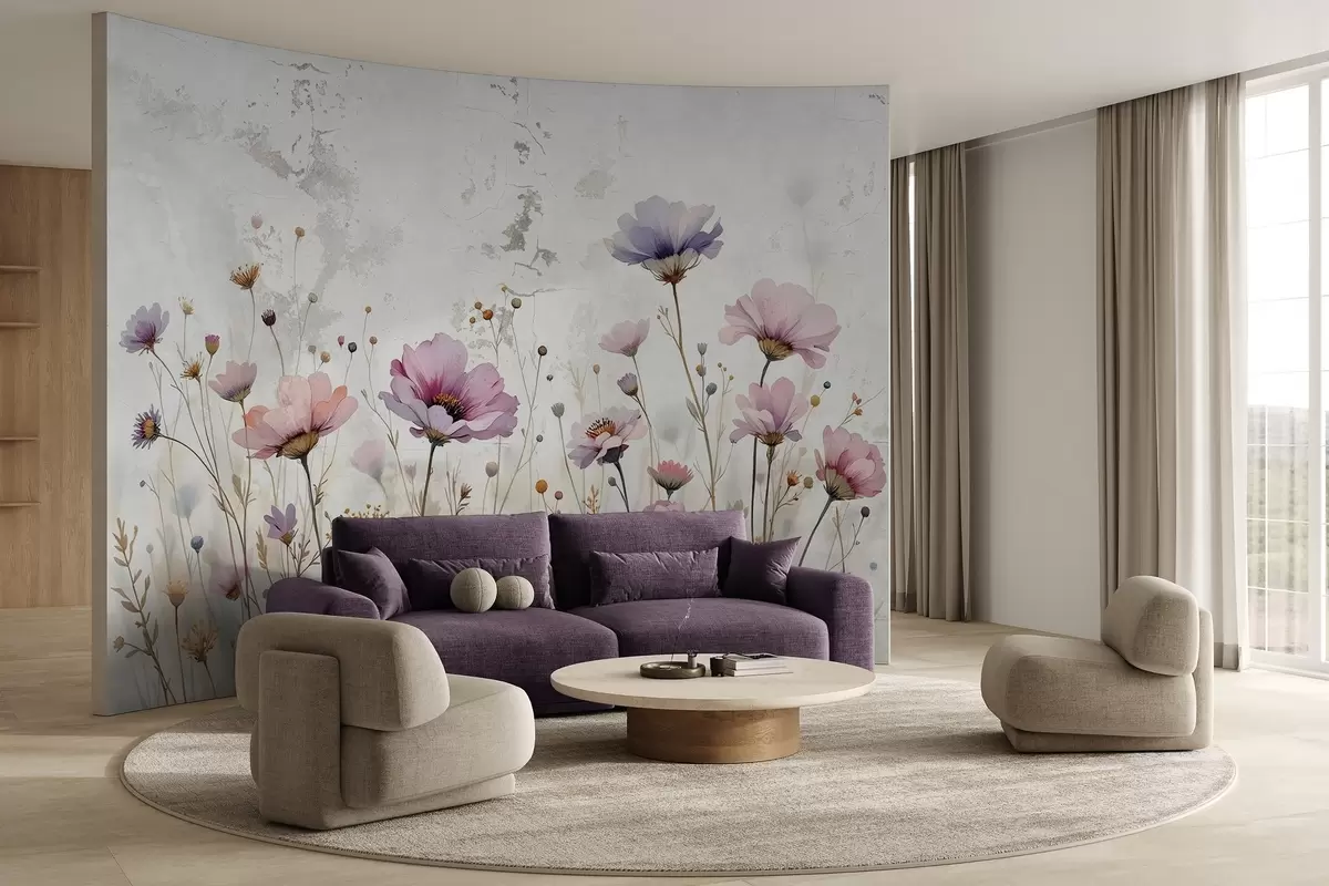 Fotobehang Aquarel bloemen in grunge stijl N° w03192
