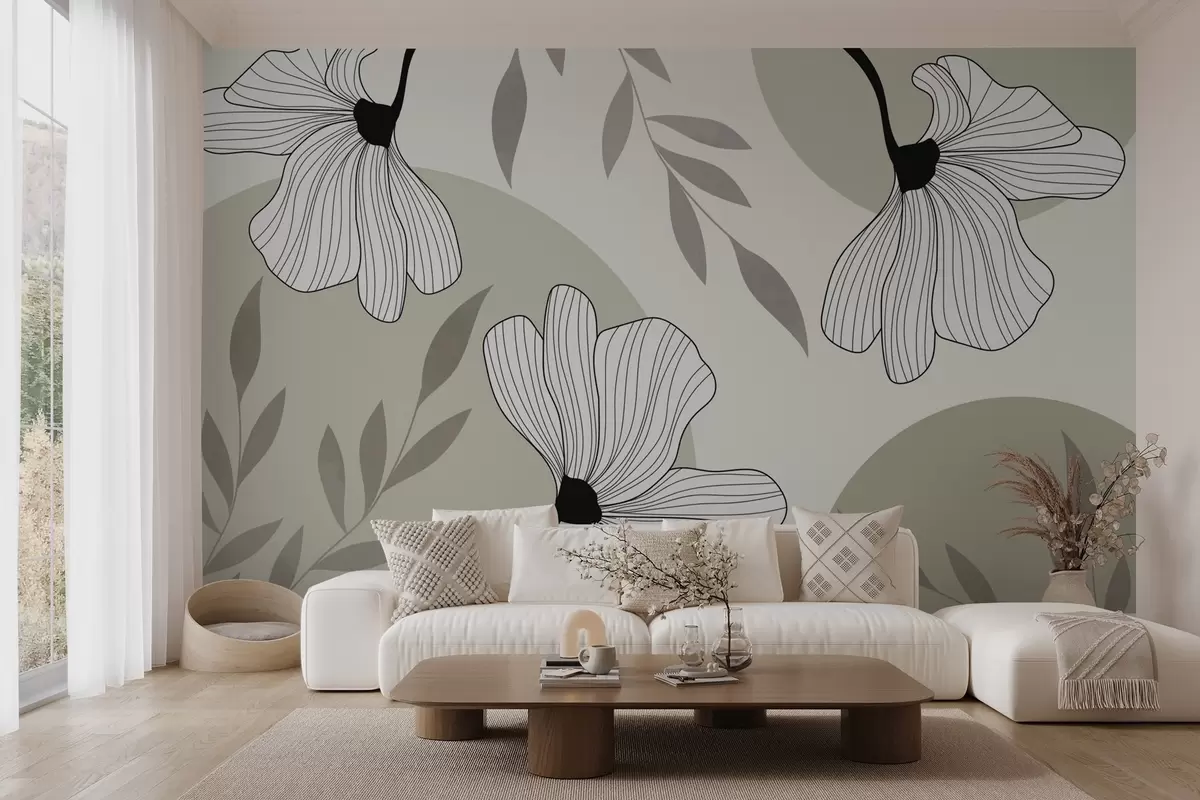 Fotobehang Abstractie met bloemen en bladeren in groene tinten N° w03328v1
