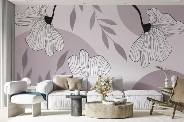 Fotobehang Abstractie met bloemen en bladeren in roze tinten N° w03328v2