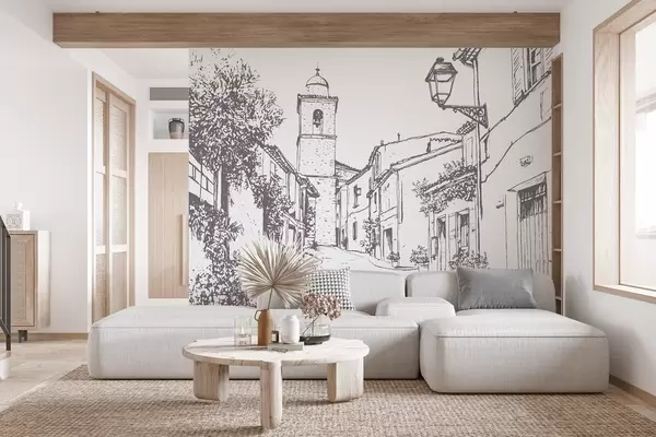 Fotobehang Stadsstraat, mooie architectuur, gebouwen, Middellandse Zee, lijntekening, beige kleur N° w03345v1