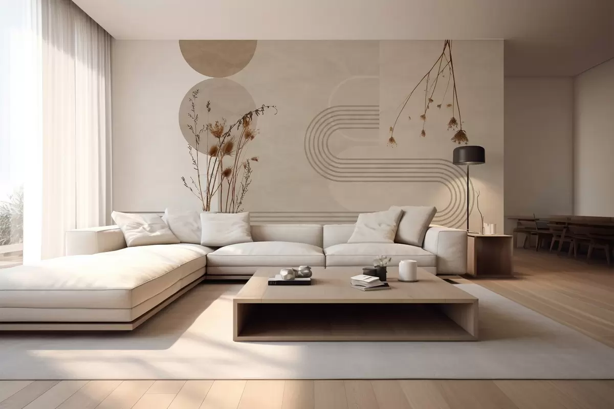 Fotobehang stijlvolle geometrie en gedroogde bloemen in beige tinten N° w03449