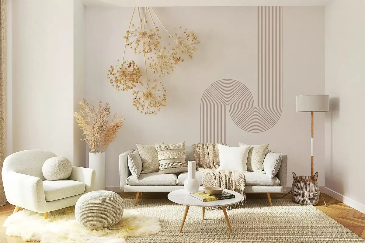 Fotobehang elegante gedroogde bloemen en lijnen in beige tinten N° w03455