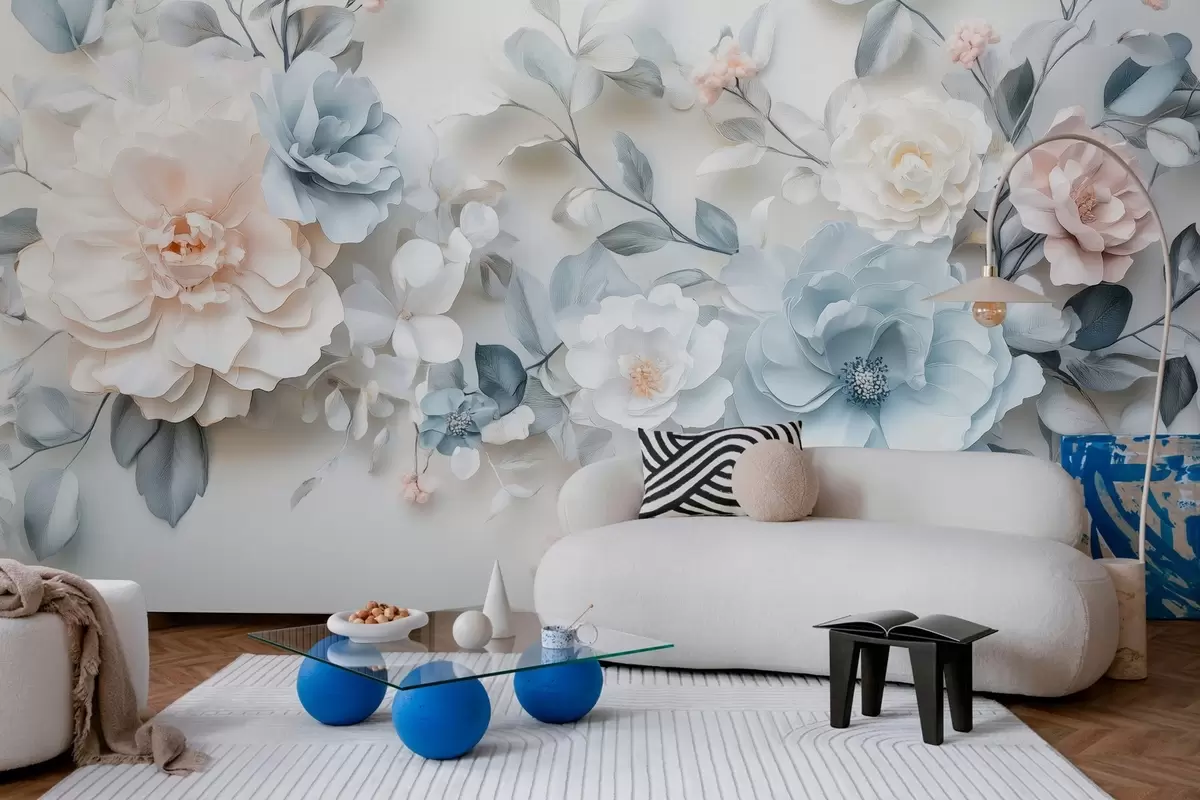 Fotobehang delicate luchtige bloemen met een volume-effect in de stijl van olieverfschilderijen N° w03457