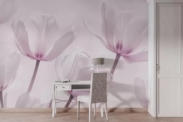 Fotobehang Mooie tulpen, bloemig, roze kleuren, realisme N° w03877v2