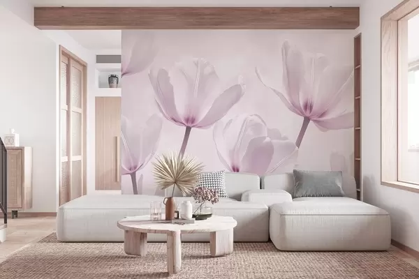 Fotobehang Mooie tulpen, bloemig, roze kleuren, realisme N° w03877v2