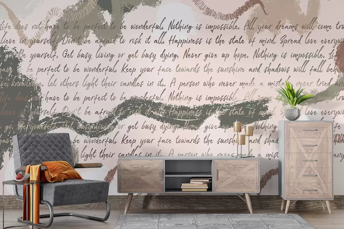 Fotobehang Ontwerp met inspirerende citaten, abstractie, natuurlijke kleuren N° w03909