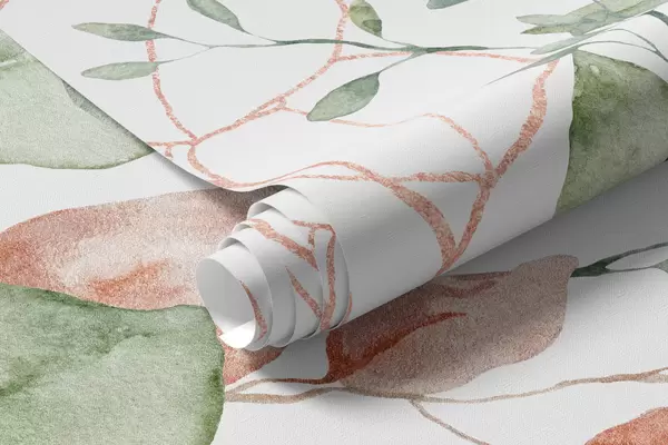 Fotobehang Vegetatie en takken imitatie van getextureerde aquarel, tinten groen en rood N° w03927v1