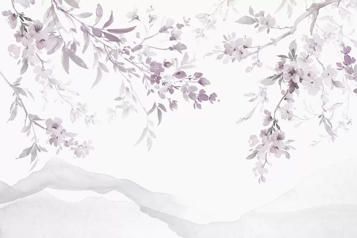 Fotobehang Bloeiende takken, imitatie van aquarel, paars-roze tinten N° w03935v1