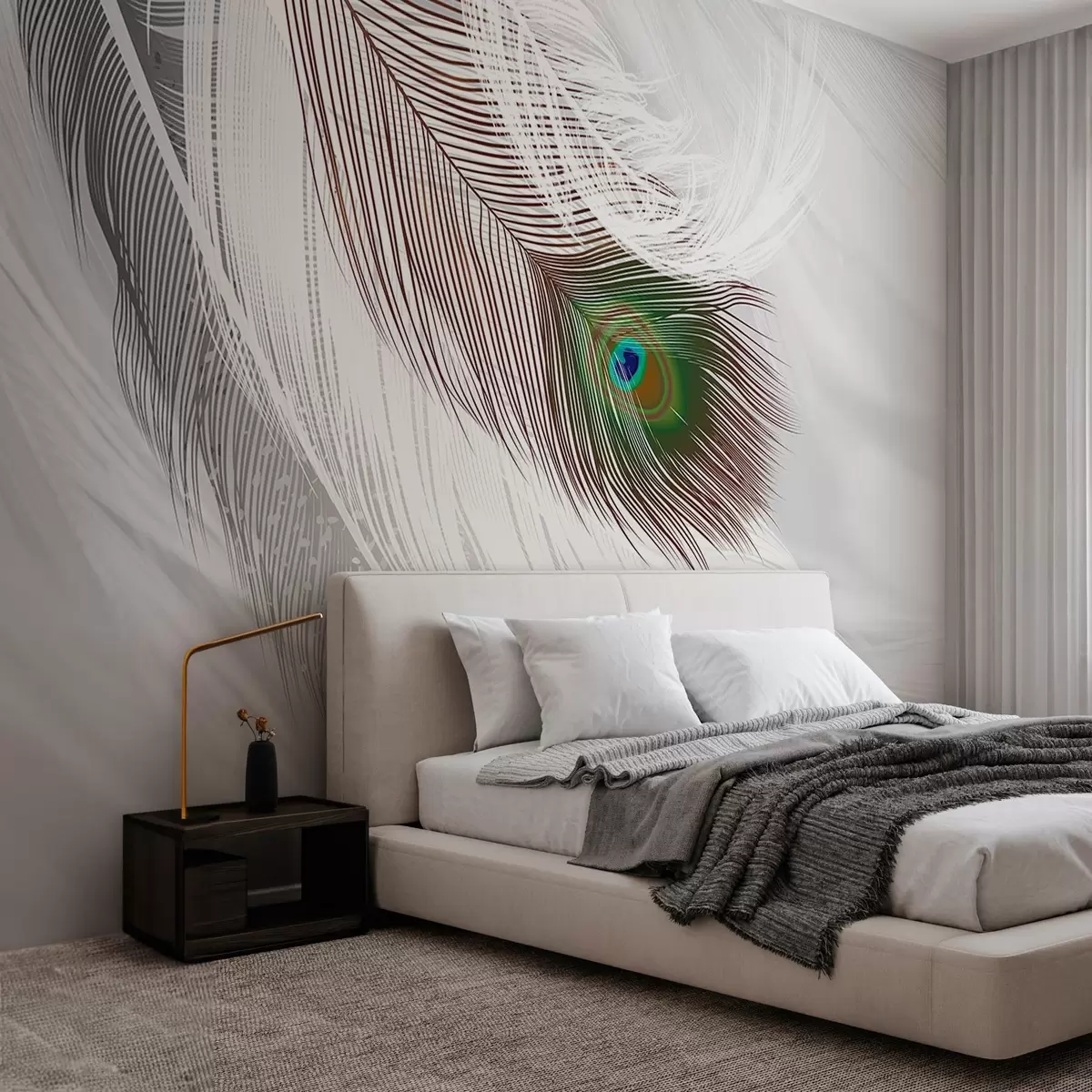 Fotobehang een grote pauwenveer tussen de veren N° w03961