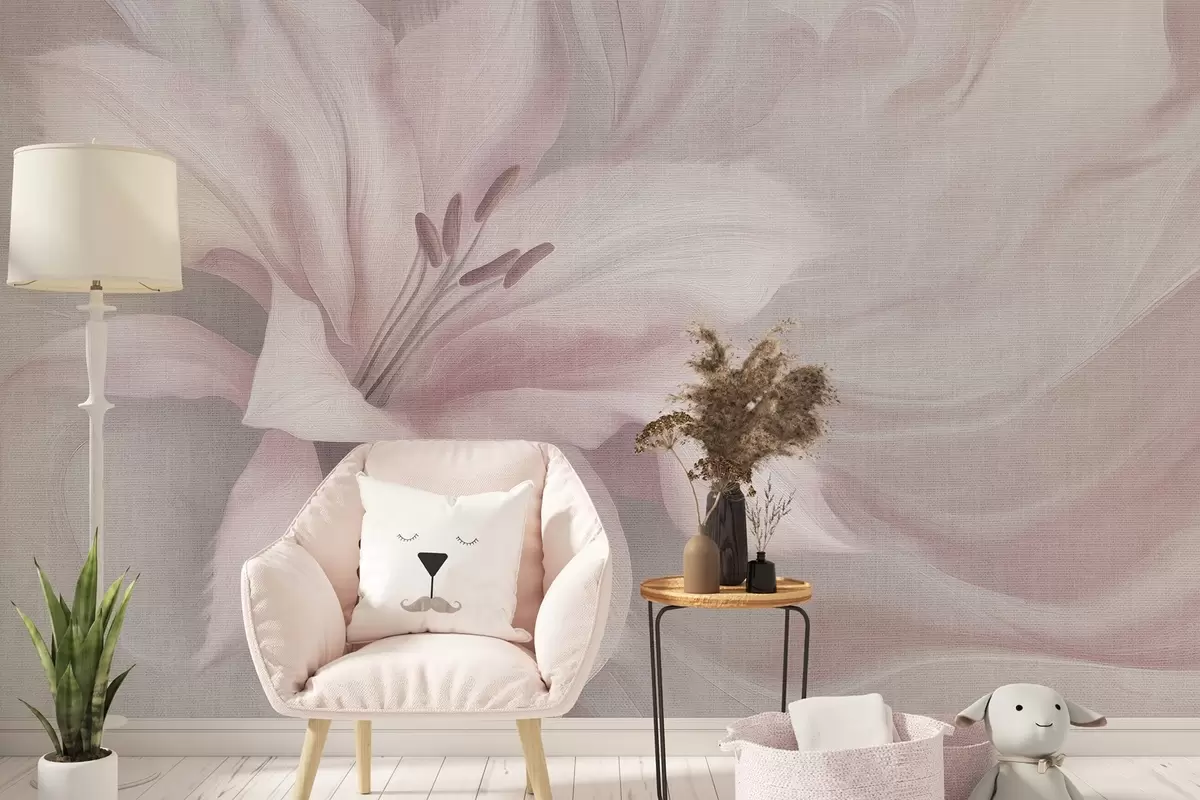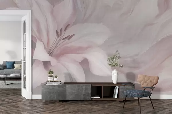 Fotobehang Leliebloem vloeiende abstractie, bloemig, roze en beige kleuren N° w04006v4