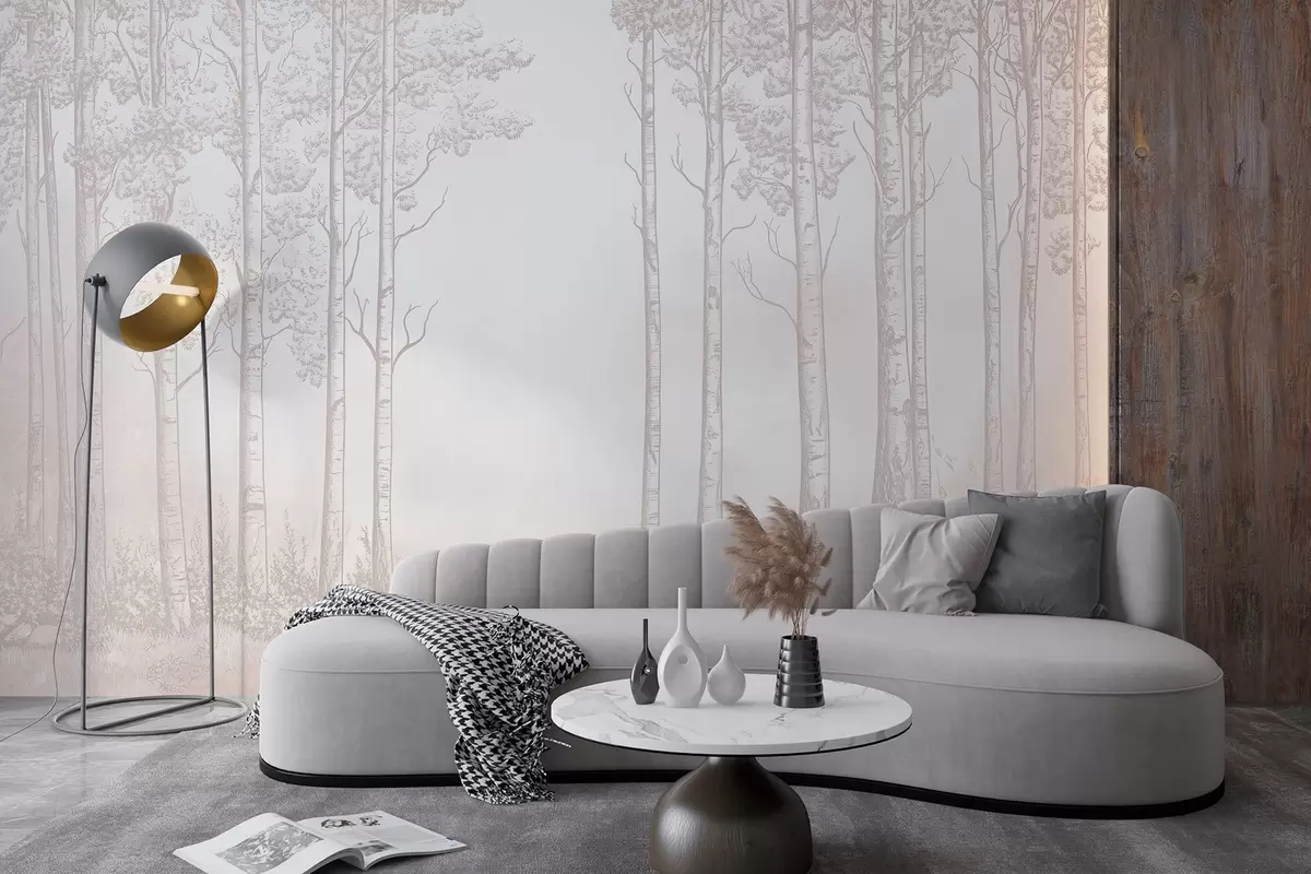 Fotobehang Bos met berken, minimalisme, natuur, beige kleurenpalet N° w04009v3