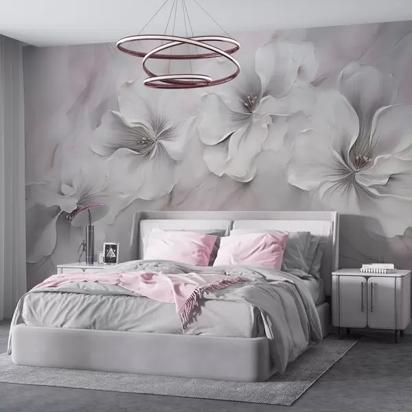 Fotobehang Olieverfschilderij bloemen op roze achtergrond N° w04047v1