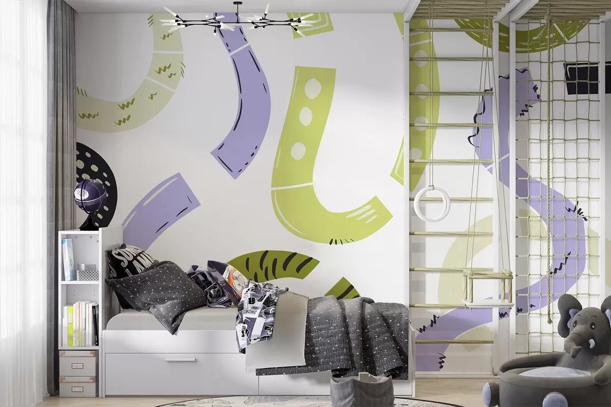 Fotobehang Abstracte tekeningen, jeugd, krabbels, groen, paars N° w04066v1