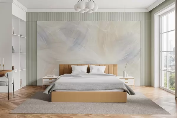 Fotobehang luchtige veren in blauw- en beigetinten N° w04071v2