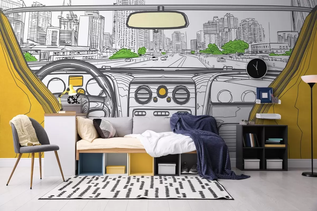 Fotobehang Contouraanzicht vanuit een auto N° w04109