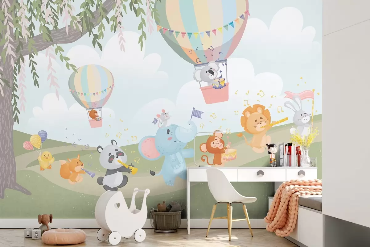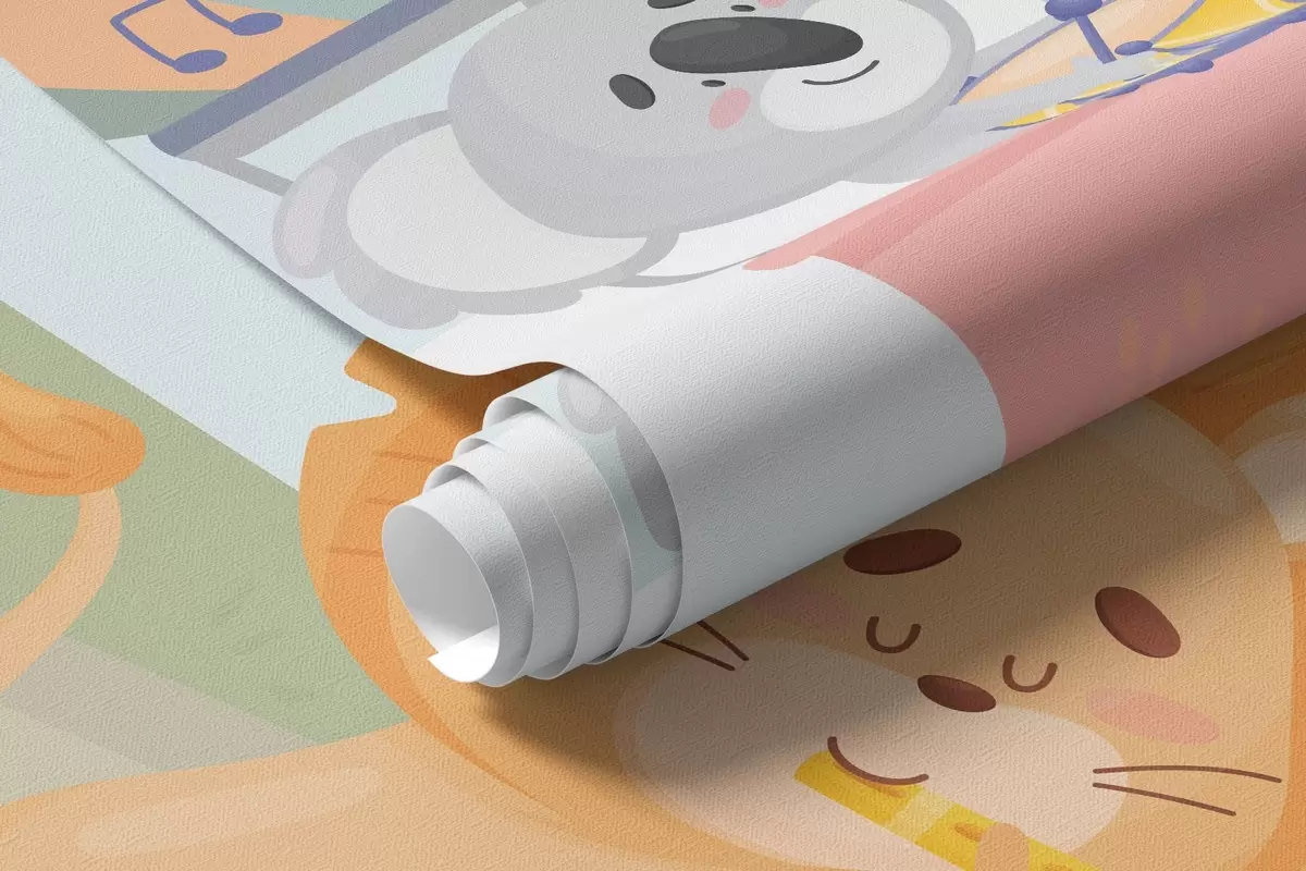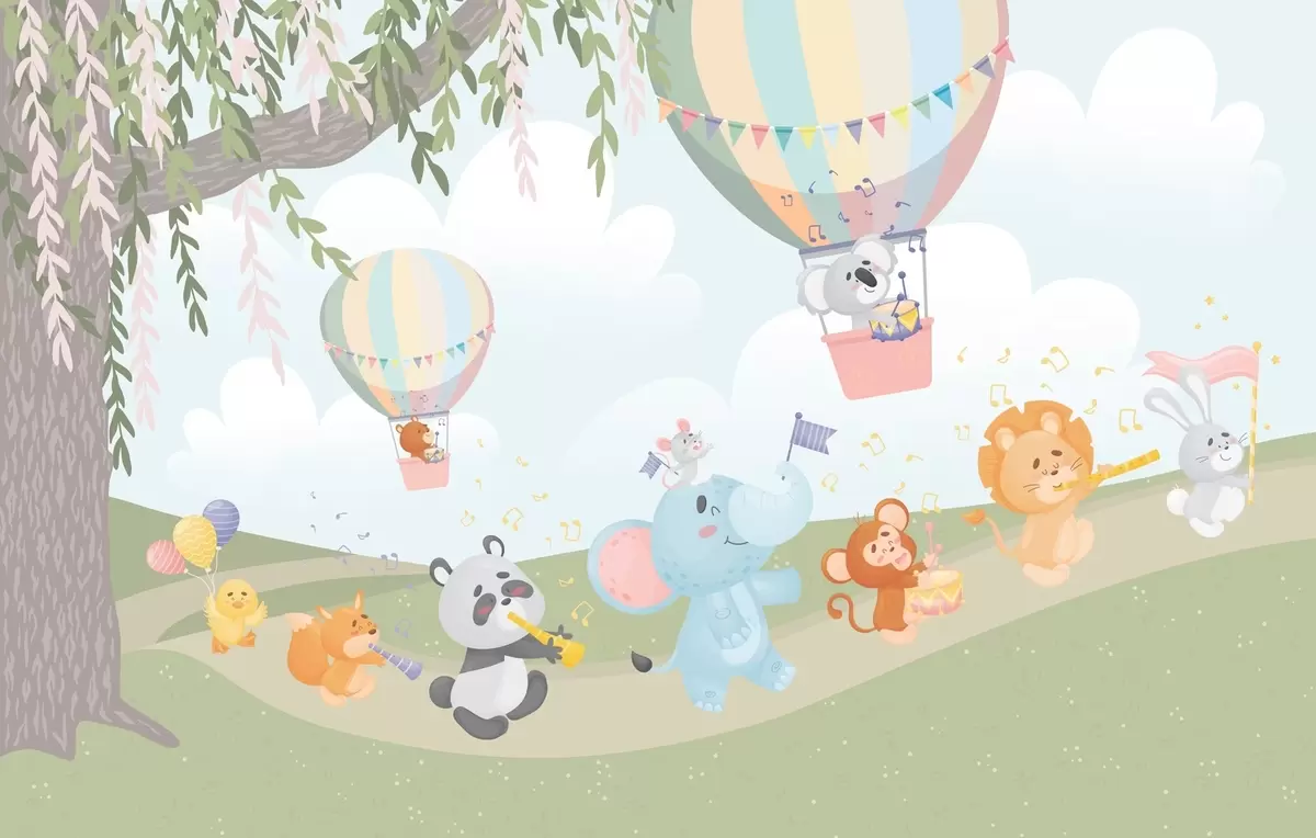 Fotobehang Landschap met dieren die muziekinstrumenten bespelen N° w04200