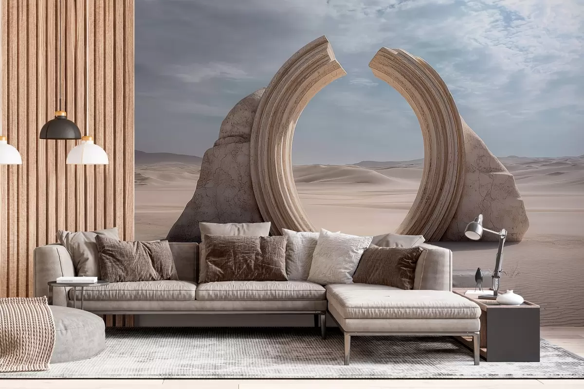 Fotobehang surrealistisch woestijnlandschap met een grote architecturale boog N° w04284