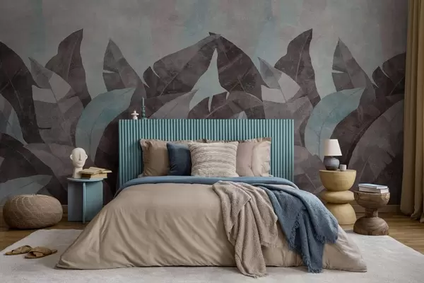 Fotobehang bananenbladeren met textuur in blauw- en grijstinten N° w04285v2