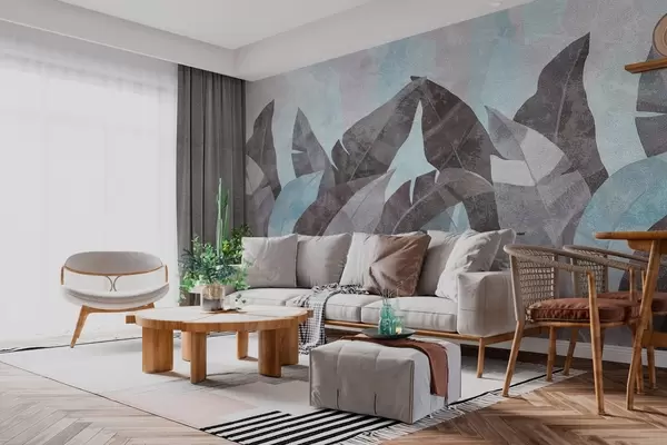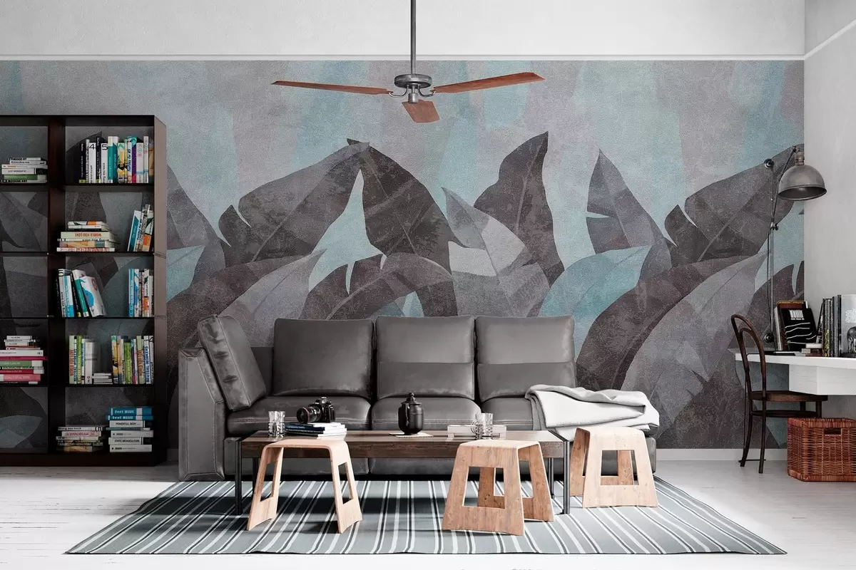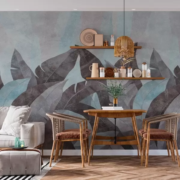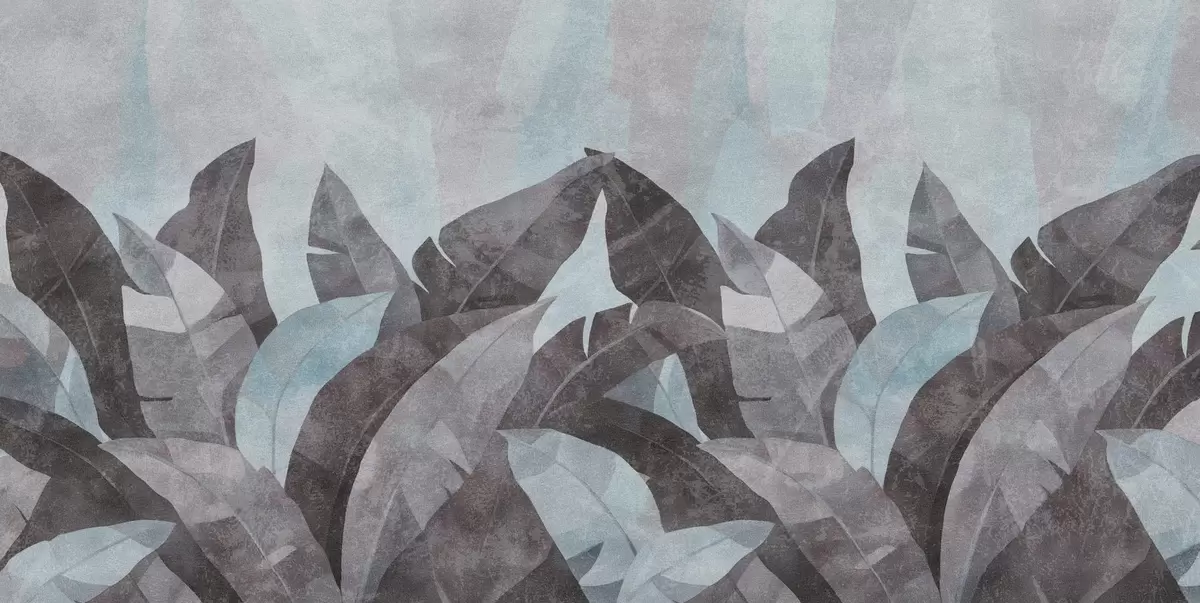 Fotobehang bananenbladeren met textuur in blauw- en grijstinten N° w04285v2