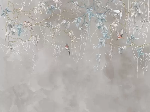 Fotobehang Variant met een zeer lichte achtergrond en blauwe accenten N° w04302v2
