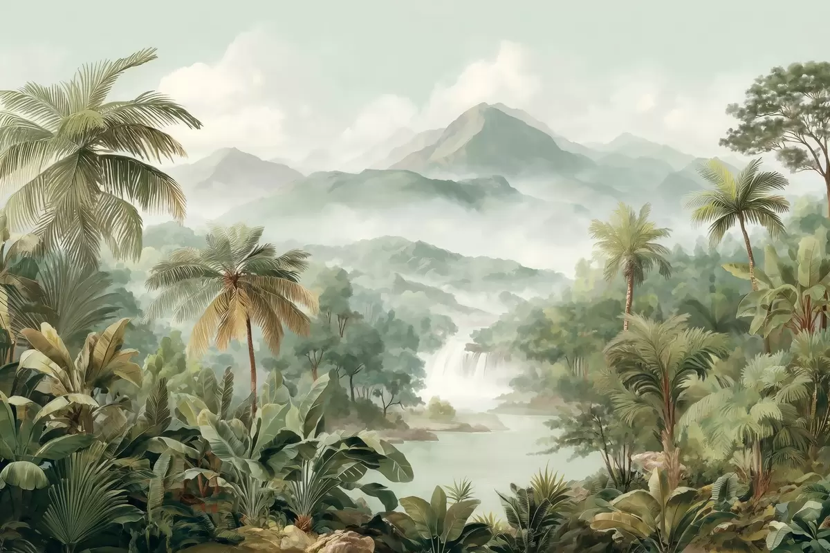 Fotobehang tropisch oerwoud met waterval N° w04306