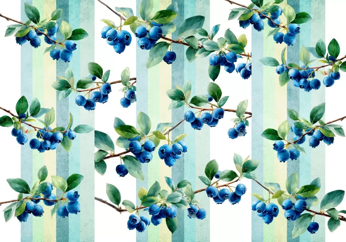 Fotobehang bosbessentrossen op een gestreepte achtergrond N° w04307